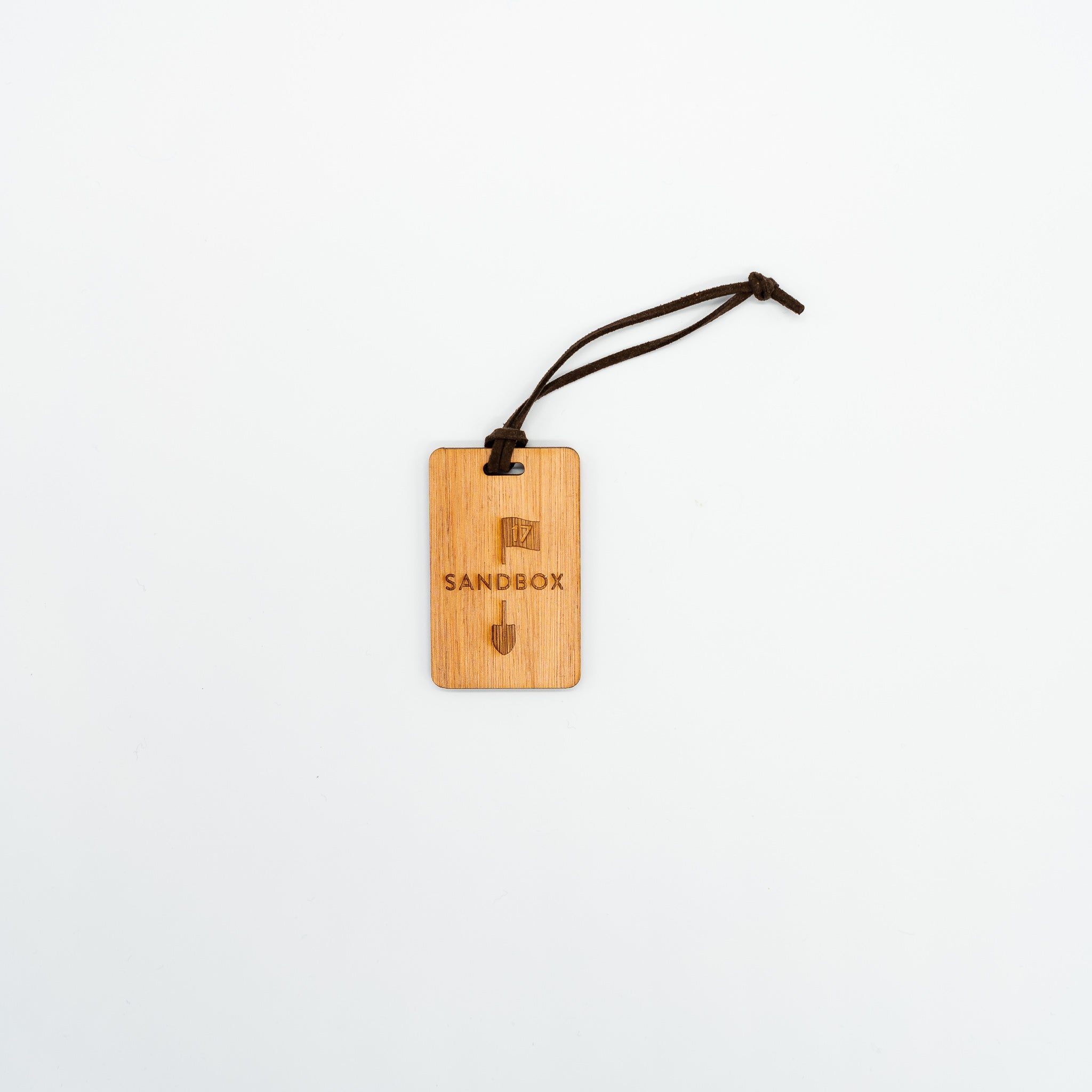 Our Seamus Bag Tag brings an accent of modern elegance to any bag. Made from Eucalyptus wood and laser-engraved in-shop, these tags are the epitome of simple style with a homegrown feel. Each tag features a hand-tied suede. Featuring the Sandbox logo.