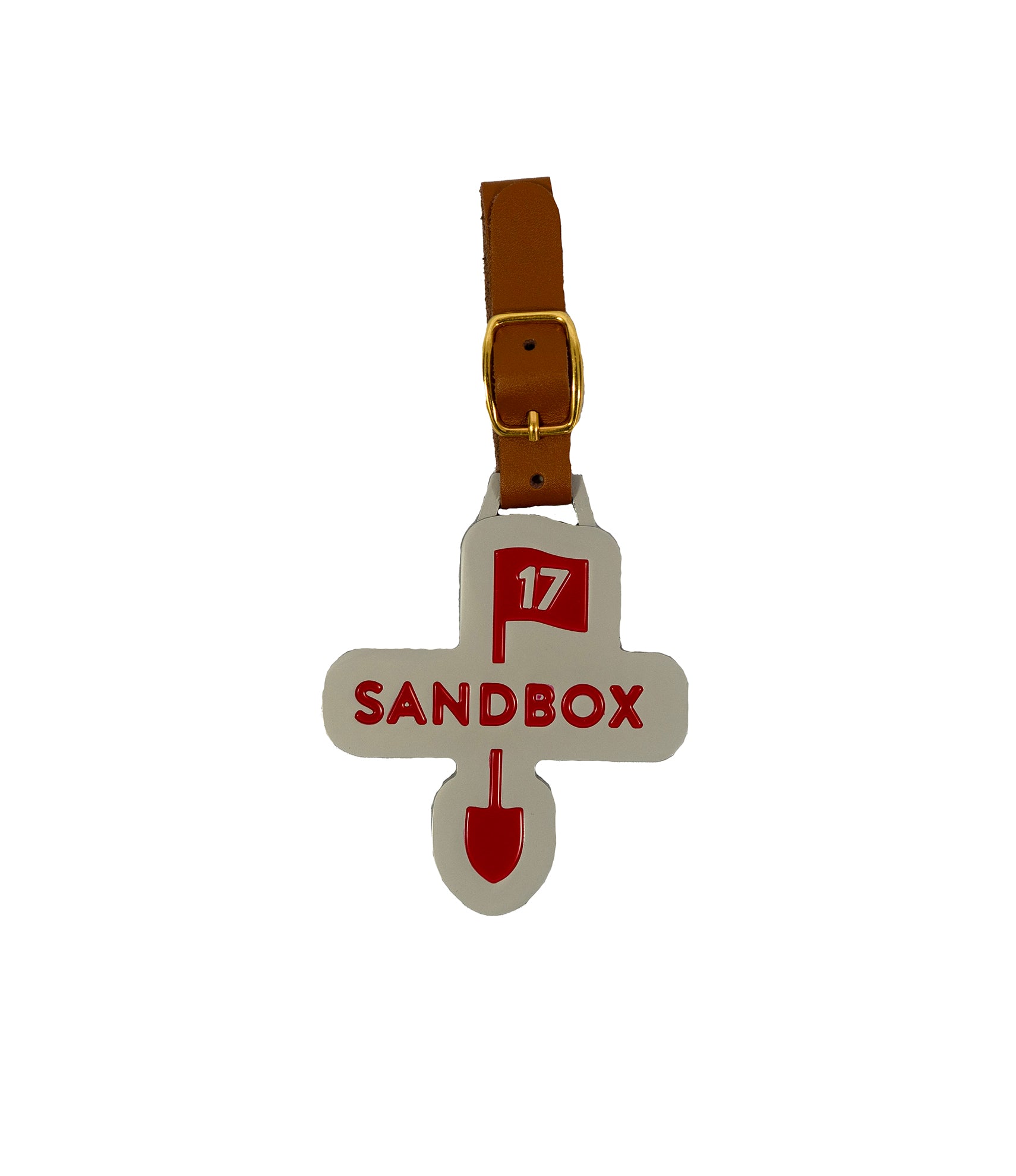 3" custom shaped Sandbox Bag Tag with adjustable strap