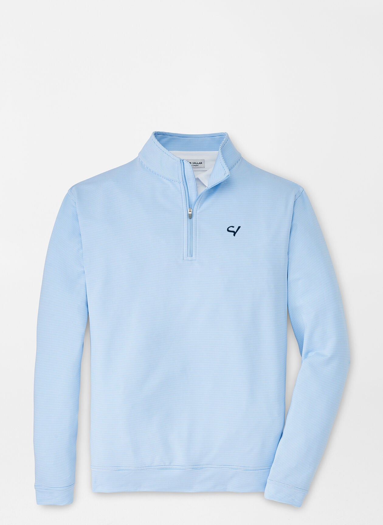Men's 89% microfiber polyester / 11% spandex pullover Athletic fit | We recommend ordering next size up for a more classic fitStretch French terryMachine wash cold with like colors; tumble dry lowImportedFeaturing the Sand Valley logoColor: Cottage Blue/ WhiteAvailable for special order pending Peter Millar inventory - embroidery can take up to 4 weeks.