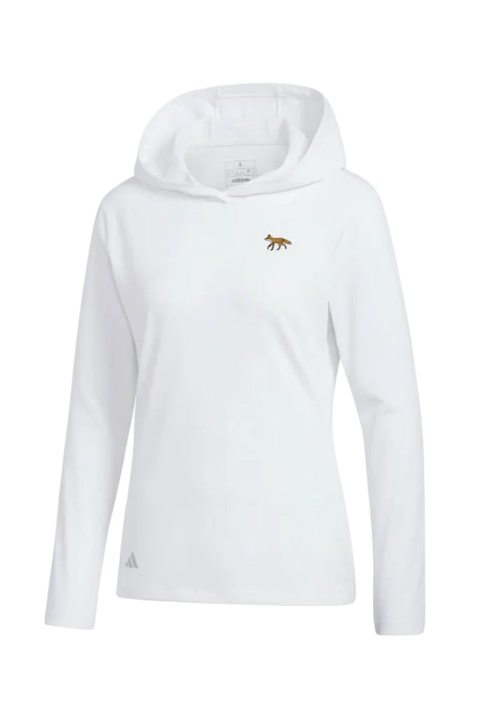 Meet your new favorite hoodie—the Adidas Ladies White Performance Hoodie that's about to become your go-to for chilly golf day. This slim-fit stunner hugs you in all the right ways, while the curved hem keeps things fresh and modern. Wrapped in a cloud-soft blend of 82% recycled polyester and 18% elastane, you'll feel like you're wearing a hug (the good kind). The brushed fabric is so buttery smooth, you'll want to live in it. Plus, that cozy hood? Perfect for those "I woke up like this" mornings when you're not quite ready to face the world. Sustainable, stylish, and seriously comfortable—this is the hoodie that actually gets it.