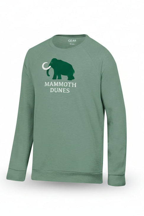 80% Cotton / 20% Polyester transitional weight French terry slub fabric with a raglan sleeve and side seam pockets.