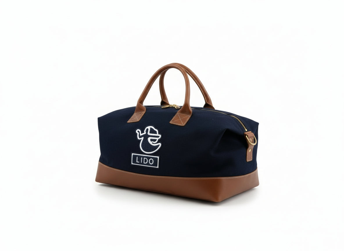 Head out of town in style and comfort with the Heritage Weekend Bag. A navy and brown leather accent is just the start of this adventure-ready tote. It's chenille Lido decoration gives a unique touch and helps make your weekend one to remember. Pack your bag and get out there!