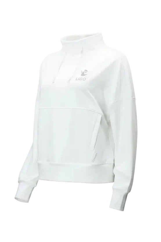 The Zero Restriction Evie Mock Pullover combines effortless style with practical comfort. This white pullover features a relaxed, slightly boxy silhouette that flatters every frame, while the convenient kangaroo pocket keeps your essentials within reach. Perfect for layering or wearing solo, it's the versatile piece your wardrobe has been missing. Designed for those who refuse to compromise between looking polished and feeling comfortable, this pullover transitions seamlessly from casual weekends to active days out.